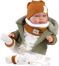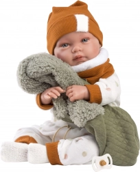 Inbegrepen zijn een decoratieve fopspeen en 3× knoopcelbatterij LR44 met een instructie voor vervanging. De pop is handgemaakt in Spanje en verpakt in een elegante cadeauverpakking – ideaal om te schenken. De outfits kunnen worden uitgebreid met originele Llorens-kleding voor de New Born-serie 43–45 cm.