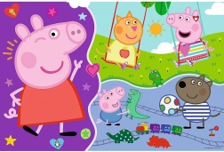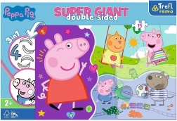 Deze reusachtige puzzel met PEPPA PIG-thema biedt kinderen een driedubbele portie plezier. Grote, stevige stukken zijn gemakkelijk vast te pakken door kleine handjes en de eenvoudige, kleurrijke illustraties met grote figuren nodigen uit om steeds opnieuw te puzzelen. De achterzijde bevat bovendien een kleurplaat en een eenvoudig spel met kleuren, zodat kinderen kleuren, concentratie en fantasie oefenen.