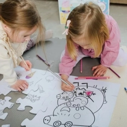 De dubbelzijdige uitvoering biedt aan de ene kant een puzzel en aan de andere kant een kleurplaat met een eenvoudig spel. Eén set houdt kinderen lang bezig.