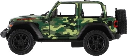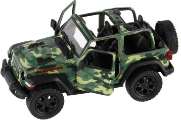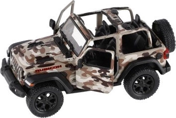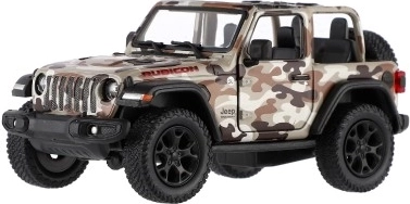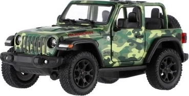 Metalen modelauto Jeep Wrangler, editie Camo met realistische details, openende deuren en terugtrekmechanisme, verkrijgbaar in drie kleuren. Ideaal voor kleine avonturiers en verzamelaars.