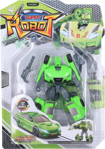Leuke autorobot van 14 cm die in een oogwenk van auto naar robot en terug verandert. Biedt bewegende gewrichten, vrije wielen voor soepel rijden, een wapen als accessoire en vier opvallende kleuren – groen, blauw, geel en oranje. Een geweldige keuze voor kinderen die transformerende speelgoed en actiespelletjes leuk vinden.