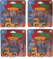 Compact constructievoertuig met vliegwielaandrijving dat kleine bouwers blij maakt met een realistische look en eenvoudig gebruik. Verkrijgbaar in vier populaire varianten – kiepwagen, betonmixer, kraan en graafmachine. Dankzij de afmetingen 8,5 × 5 × 5,5 cm ligt hij perfect in kinderhanden en is hij ideaal om thuis en onderweg mee te spelen.