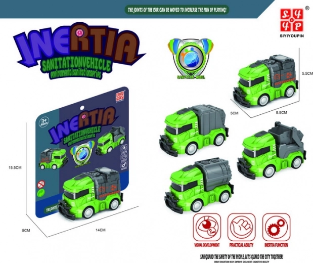 Het kleine schoonmaakwagentje met vliegwielaandrijving maakt elke jonge bestuurder blij. Dankzij het vliegwiel rijdt het voertuig na het terugtrekken vanzelf weg, het heeft een compact formaat van 8,5 cm en is verkrijgbaar in 4 varianten. Een geweldig speelgoed voor de ontwikkeling van motoriek en fantasie.