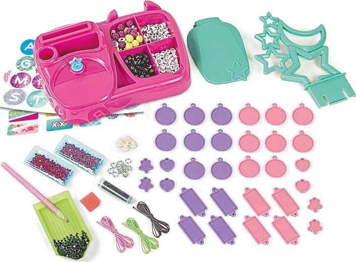Maak originele accessoires die je persoonlijkheid uitdrukken. De CRAZY CHIC-set combineert letterkralen, kleurrijke decoratieve elementen en fonkelende steentjes, zodat je eenvoudig armbanden, kettingen en hangers met eigen tekst ontwerpt. Dankzij de praktische werkplaat met drie gedeelten heb je kralen, steentjes en afgewerkte sieraden altijd bij de hand.
