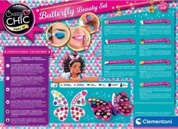 Ontdek de creatieve wereld van make-up met de Crazy Chic vlinder-cosmeticaset. Kinderen kunnen veilig oog- en lipmake-up uitproberen, tijdelijk hun haar kleuren en een eenvoudige manicure doen. Het compacte ontwerp met spiegel houdt alles overzichtelijk bij elkaar en is ideaal voor onderweg.