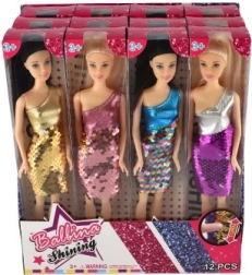 Deze elegante pop brengt kinderen eindeloos veel fantasie. Ze draagt een glinsterende jurk met tweezijdige pailletten die van kleur verandert wanneer je erover strijkt – een effect waar kinderen dol op zijn. Dankzij het stevige plastic lichaam en de hoogwaardige afwerking is ze perfect voor dagelijks spel en als cadeau.