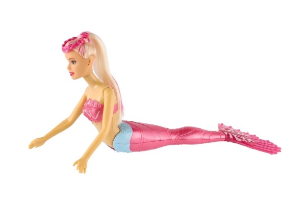 Ontdek de magie van de onderwaterwereld met een zeemeermin die betovert met sprankelende details en lang haar. De flexibele staart met draaibare vin zorgt voor vloeiend “zwemmen” en realistische bewegingen, ideaal voor spelen in bad en daarbuiten.