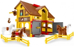 - Inhoud van de set: huisje met openslaande deuren, lift, 4 paarden, 6 afrasteringen voor de weide, 2 containers voor water en voer, hindernisbaan, hooikraan, opritten en een set van 34 stickers.
