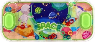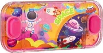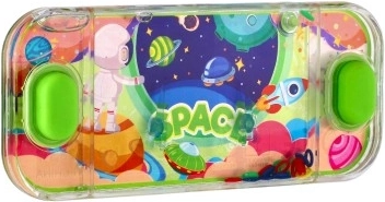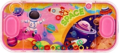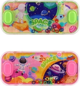 Een klassiek waterspel dat generaties vermaakt. Door de zijknoppen in te drukken creëer je waterstroming en probeer je de drijvende ringetjes op de pinnetjes te plaatsen. Dankzij het compacte formaat van 15 × 7 cm past het gemakkelijk in je zak en is het ideaal voor onderweg, in de auto of tijdens het wachten bij de dokter.
