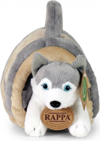 Pluchen husky met draagbare hondenhok 13 cm eco-friendly