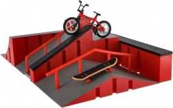 Dit gedetailleerd uitgewerkte vinger-skatepark laat je tricks trainen en showen alsof je in een echt park bent. De verschillende onderdelen – ramp, trappen en leuning – zijn ontworpen voor soepele overgangen en combinaties van tricks op zowel de skateboard als de mini BMX.