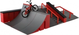 Ramps, trappen en leuning (rail) zijn klaar voor trickcombinaties op zowel skateboard als mini BMX. De stabiele basis zorgt voor soepele landingen en veilig finger-riden.