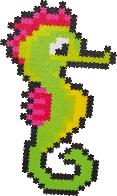 Ontdek creatieve fun met de mozaïekpuzzeltjes van Schmidt Jixelz en leg een schattig zeepaardje van 350 duurzame stukjes. De stukjes klikken soepel in elkaar, het eindmotief valt niet uit elkaar en je kunt leggen volgens de meegeleverde 1:1-voorbeeldplaat of je eigen fantasie. Perfect voor het ontwikkelen van fijne motoriek, concentratie en creativiteit.