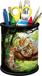 Ontdek een slimme toevoeging voor je bureau: een 3D-puzzel pennenhouder met een wild luipaardmotief. Speciaal gebogen stukjes van stevige kunststof passen perfect in elkaar en creëren een sterke, stabiele en praktische houder voor schrijfwaren, make-upkwasten en andere kleinigheden – en dat zonder lijm en zonder rommel.